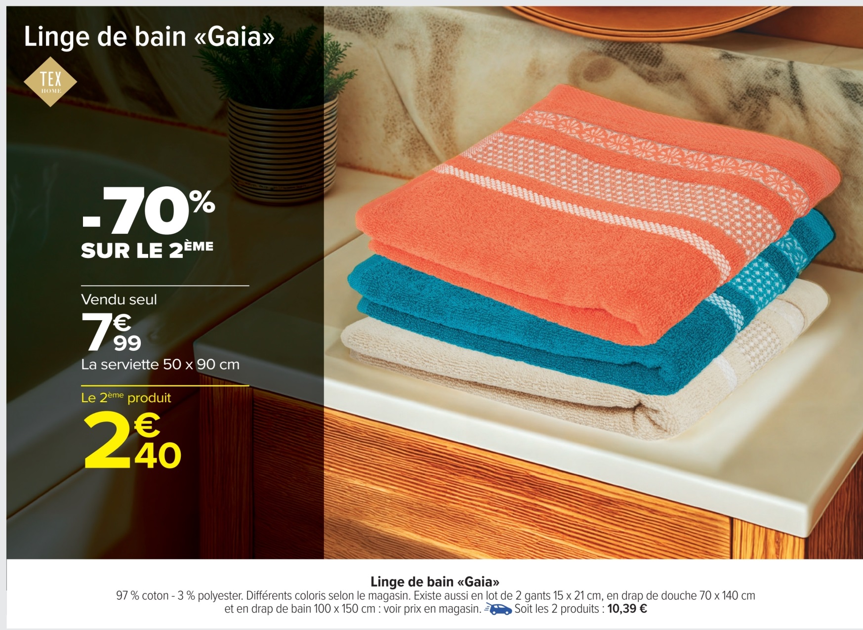 DRAP DOUCHE 70X140 IMPRIME GAIA 97% COTON 3% POLYESTER