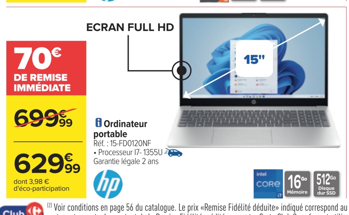 MICRO ORDINATEUR PORTABLE INTEL CORE I5 1334 U REF 15FD0116NFI5